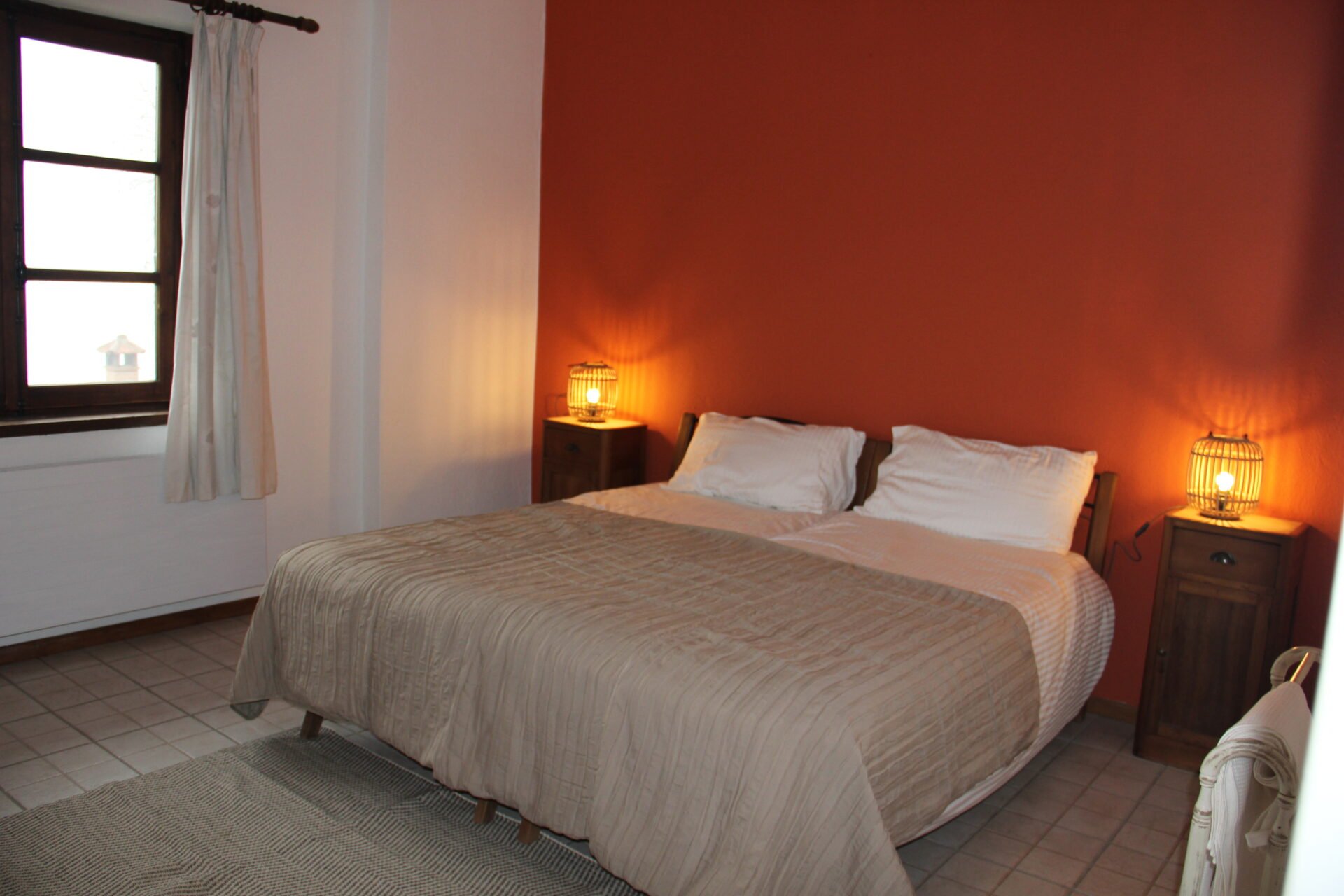 This is the first B&B-room next to the stairs. From the window a beautiful view of the valley. The room is equipped with a double bed with comfortable mattresses. There is also a bathroom with shower, sink and toilet. A third bed can be added on request. If we add a bed for a third person on request, an additional 20 euros per day will be charged. Both coffee and tea can be made in the room. The B&B rooms have a shared terrace at the building.